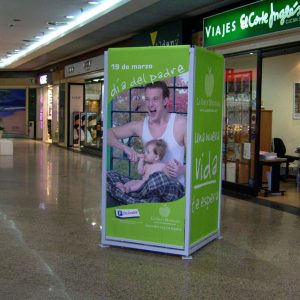 Soporte formado por cuatro caras que nos permitirá alternar diferentes mensajes publicitarios.